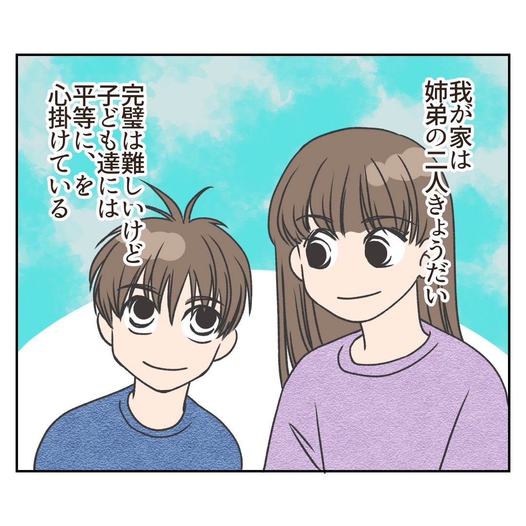 子どもには平等にと思ってるけど2024.09.28子どもたちのことコミックエッセイ, 子育て漫画, 日常 本編広告 あとがき平等って難しいですよね〜。 かなり気をつけているのが、上の子に『お姉ちゃんなんだから』というのは絶対に言わない。っていうのと、オヤツの量は同じ量ってことでしょうか(笑) 6 コメントはこちら 同じカテゴリの記事 娘が入院になりました・24 娘が入院になりました・22 娘が入院になりました・21 娘が入院になりました・20 娘が入院になりました・19 娘が入院になりました・18 娘が入院になりました・17 娘が入院になりました・16 娘が入院になりました・15 息子が眉毛を剃ったなら 娘が入院になりました・14 娘が入院になりました・13 娘が入院になりました・12 娘が入院になりました・11 娘が入院になりました・10 娘が入院になりました・9 娘が入院になりました・8 娘が入院になりました・7 娘が入院になりました・6 娘が入院になりました・5 娘が入院になりました・4 娘が入院になりました・3 娘が入院になりました・2 娘が入院になりました・1 有り難いけどちょっと惜しい 姉弟の違いを感じた話 卒業式に思ったこと わたしを変えるものは・⑤ わたしを変えるものは・③ 想像と違った男の子育児・⑨ 想像と違った男の子育児・⑧ 想像と違った男の子育児・⑦ 想像と違った男の子育児・⑥ 想像と違った男の子育児・⑤ 想像と違った男の子育児・④ 想像と違った男の子育児・③ 想像と違った男の子育児・② 想像と違った男の子育児・① 飯テロは突然に 息子に感じる既視感 子どもには平等にと思ってるけど 姉弟喧嘩がどんどんエグくなる 魚で成長したと思ったのに 魚で成長を感じた話 愛が重めの男を拒否できない理由 前の記事 寄り添う美容室 2024.09.19次の記事 おいでませミシン沼・⑤ 2024.10.01アプリなら通知ですぐ読める! NAPBIZブログ