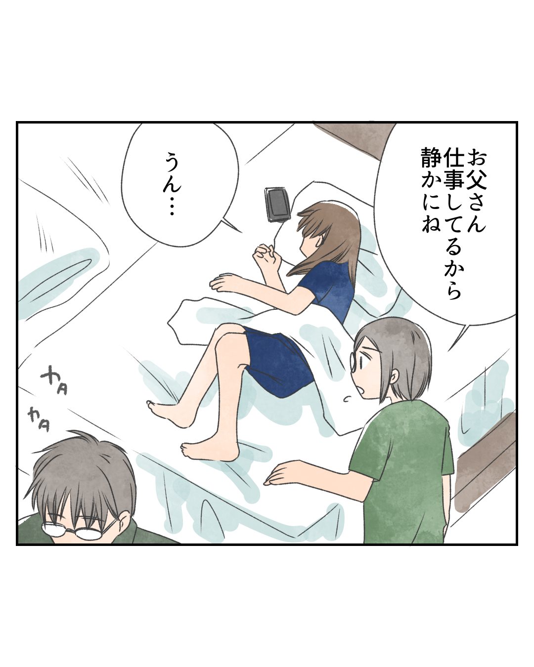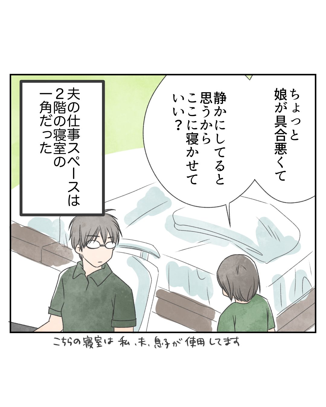 夫の仕事中は、基本寝室にはあまり入らないようにしているのですが、近くに人の気配を感じつつ休むには、寝室が良かろうと判断しました。